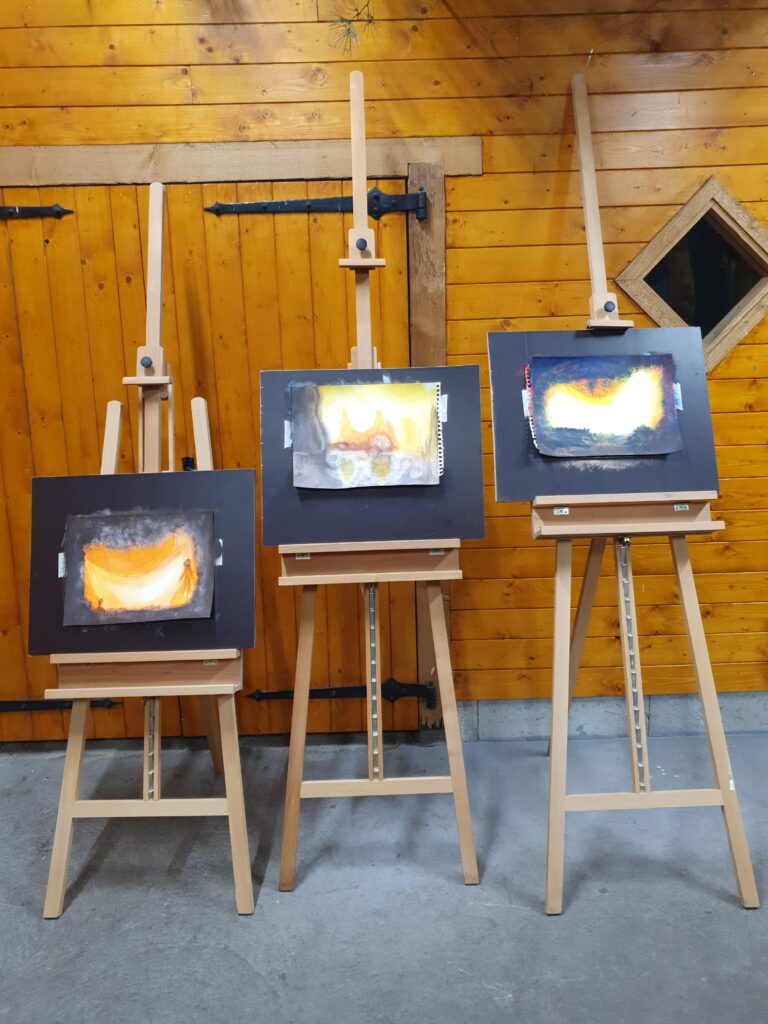 We schilderen ook buiten in het bos of op het openveld bij Terug naar Eden. Omringt door de verschillende soorten bomen, planten en bloemen maar ook een veelzijdigheid aan vogels en andere dieren geven ons een glimp van de veelkleurigheid van onze Schepper.